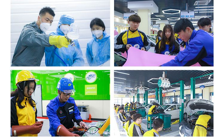 南京万通致力打造成具有国际化、市场化、专业化、校企一体化和职业化特质的特色汽车主题文化校园。 奔驰、宝马、奥迪高端车实训室、新能源、整车、钣金、底盘、电气、发动机、喷涂、汽车美容、商务等实训室