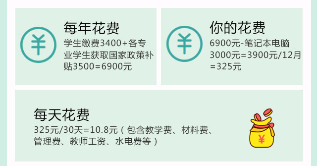 除报名的时候缴纳学费和后期学生 考证的费用外,不再收取其它费用!